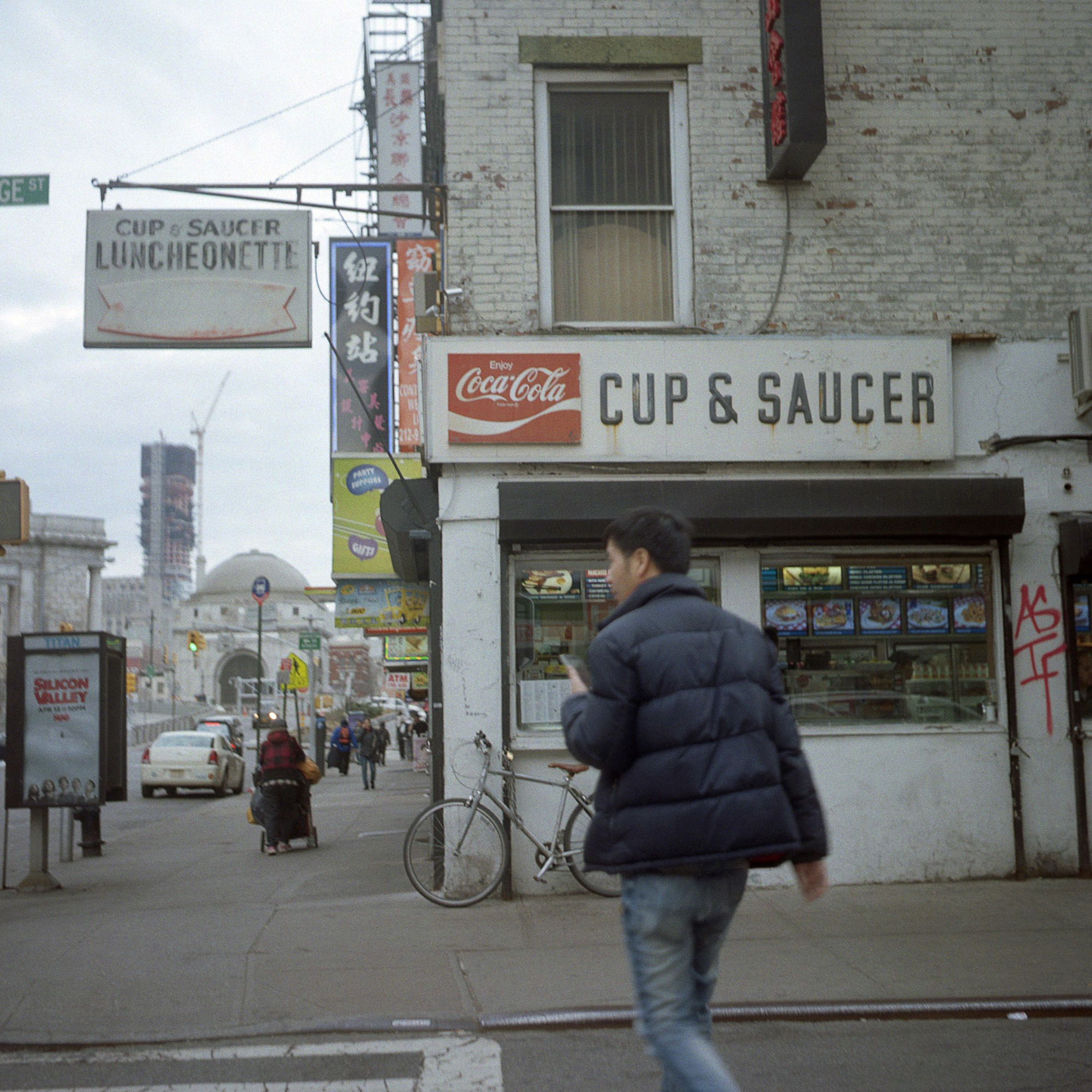 3 April 2015. Walk circumnavigating Manhattan Island. The name Manhattan derives from the word Manna-hata, as written in a logbook dating back to 1609. The word has been translated as "island of many hills" from the Lenape language. Film shot with Rolleiflex.